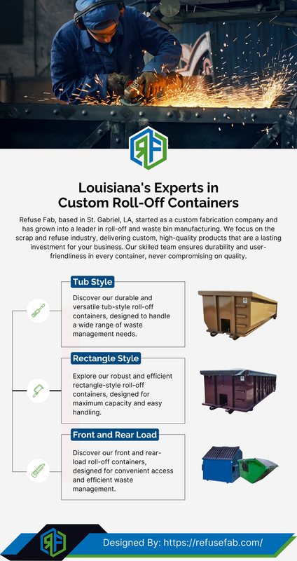 Refuse Fab is a trusted leader in manufacturing top-quality, customizable roll-off containers and waste bins. Originally starting as a custom fabrication company, Refuse Fab now specializes in serving the scrap and refuse industry with durable, high-performance solutions. Their containers are built tough to meet industry demands, offering long-lasting value and reliability. With a strong commitment to quality craftsmanship and customer satisfaction, Refuse Fab delivers waste management products tailored to your specific business needs. Get a quote today and experience unmatched durability and service.