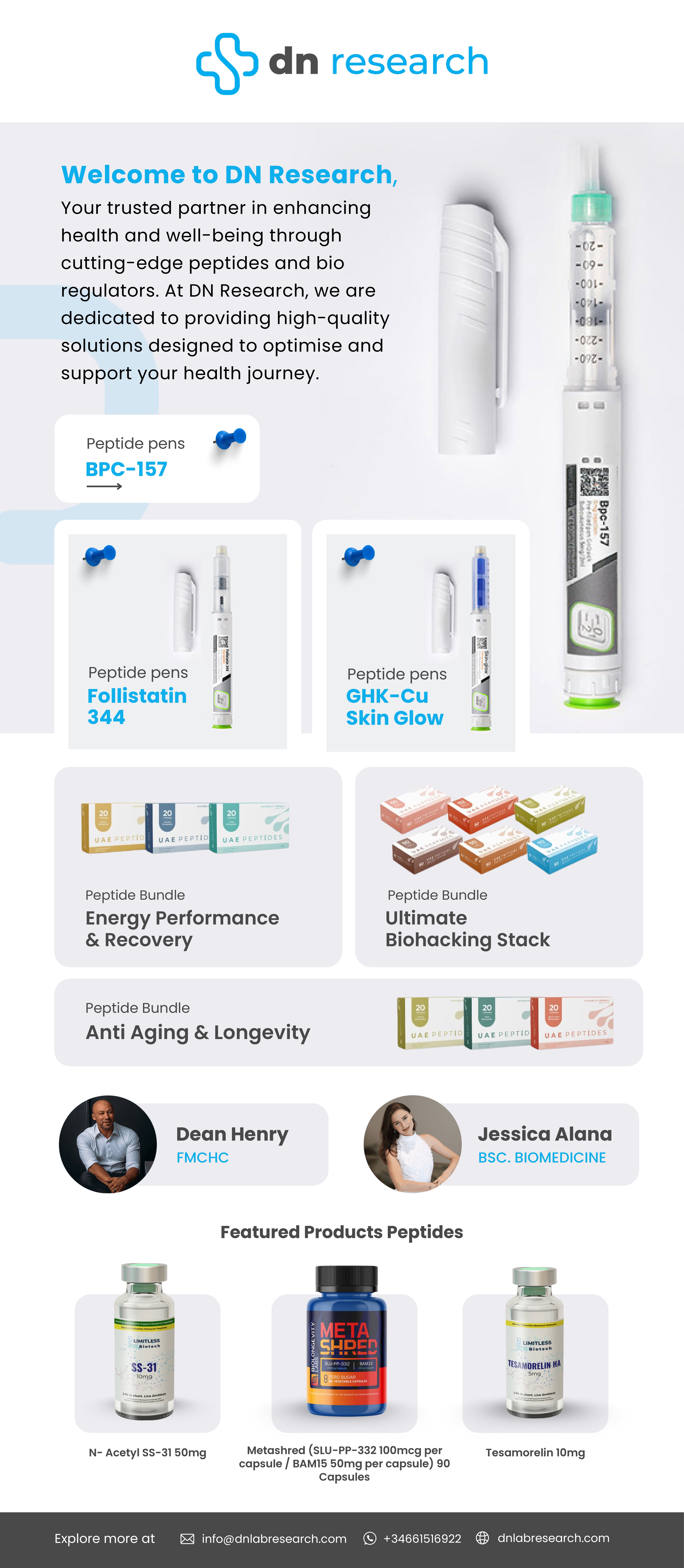 DN Research is your trusted partner in enhancing health and well-being through cutting-edge peptides and bio regulators. At DN Research, we are dedicated to providing high-quality solutions designed to optimise and support your health journey.