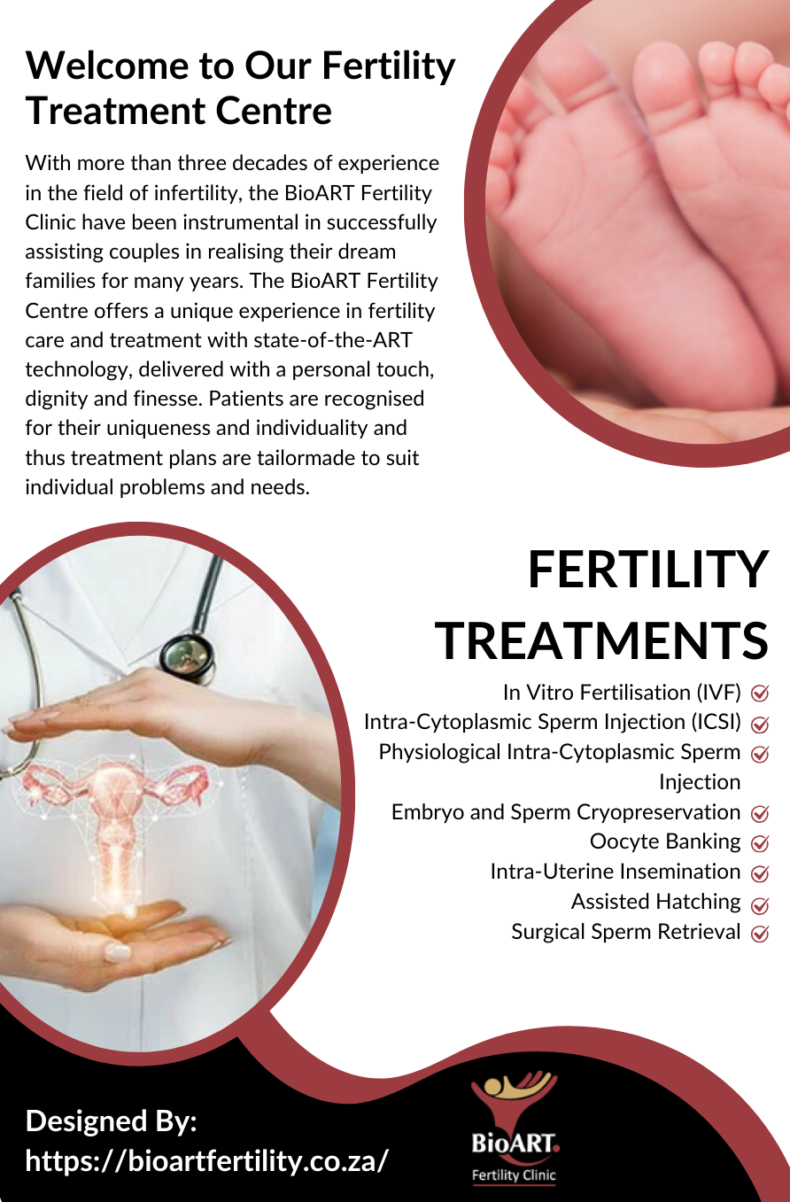 With more than three decades of experience in the field of infertility, the BioART Fertility Clinic have been instrumental in successfully assisting couples in realising their dream families for many years. The BioART Fertility Centre offers a unique experience in fertility care and treatment with state-of-the-ART technology, delivered with a personal touch, dignity and finesse. Patients are recognised for their uniqueness and individuality and thus treatment plans are tailormade to suit individual problems and needs.