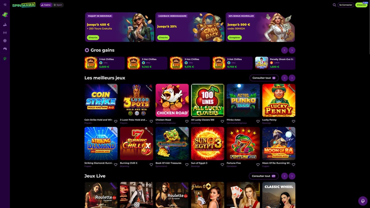 Il spinmama casino rappresenta una fra le più straordinarie soluzioni di gioco disponibili oggi nell'industria. Grazie a una ricca varietà di slot, questo sito propone un'avventura straordinaria a ciascuno gli utent